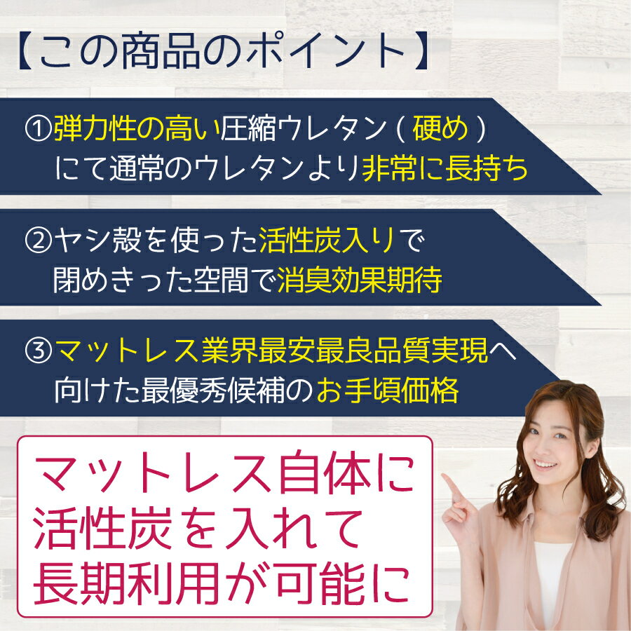 消臭効果が期待できる活性炭入りで、長期利用効果抜群の高弾力が魅力で嬉しいマットレス。